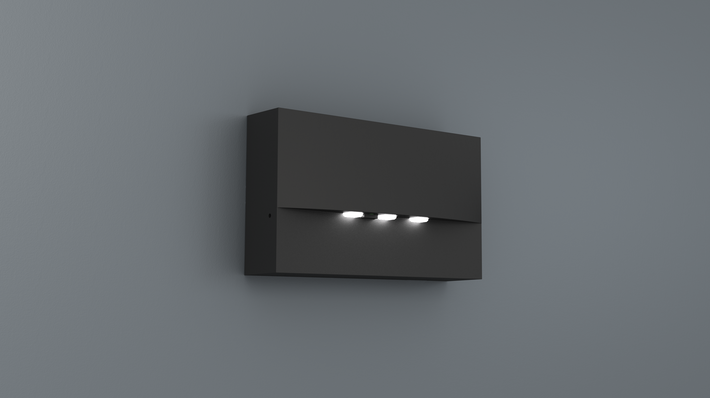 Luminaire de sécurité haut de gamme en zinc moulé sous pression pour montage mural encastré. Il est prévu pour un montage dans des boîtes d’interrupteur doubles conventionnelles, le cadre de montage pouvant être aligné sur la boîte. L’écran en zinc moulé sous pression est monté sans fixation visible de l’extérieur.