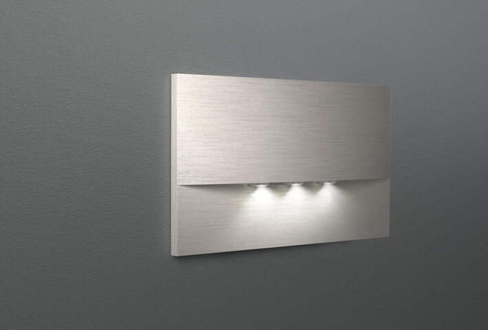Luminaire de sécurité haut de gamme en zinc moulé sous pression pour montage mural encastré. Il est prévu pour un montage dans des boîtes d’interrupteur doubles conventionnelles, le cadre de montage pouvant être aligné sur la boîte. L’écran en zinc moulé sous pression est monté sans fixation visible de l’extérieur.