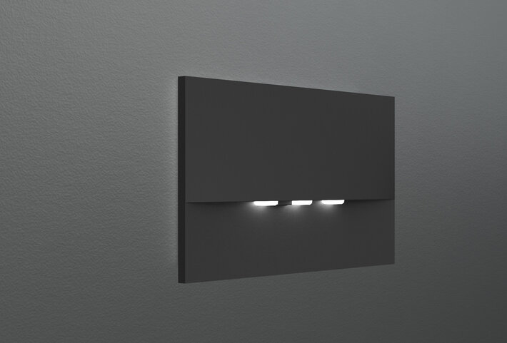Luminaire de sécurité haut de gamme en zinc moulé sous pression pour montage mural encastré. Il est prévu pour un montage dans des boîtes d’interrupteur doubles conventionnelles, le cadre de montage pouvant être aligné sur la boîte. L’écran en zinc moulé sous pression est monté sans fixation visible de l’extérieur.